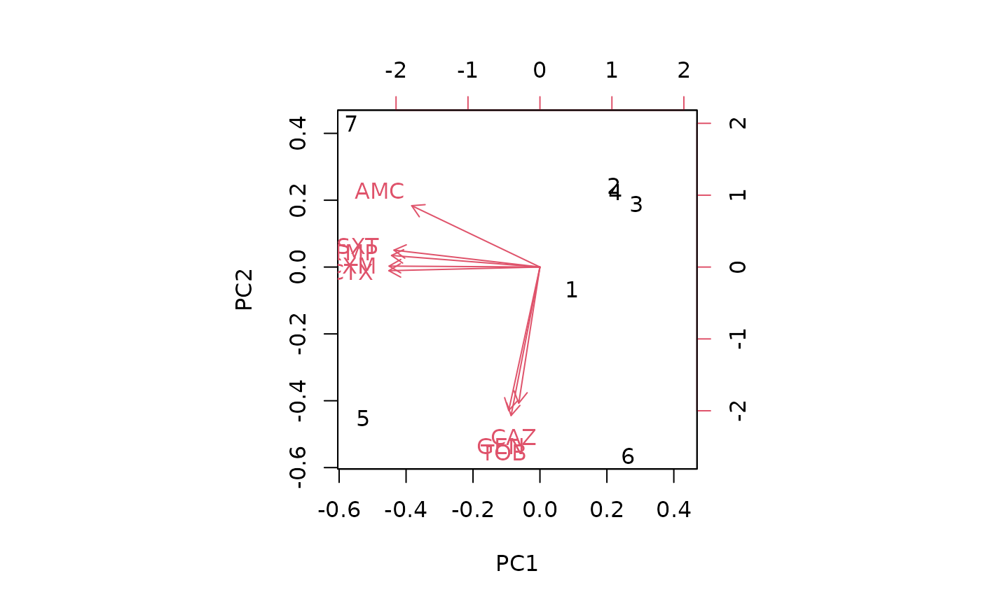#> ℹ Columns selected for PCA: "AMC", "CAZ", "CTX", "CXM", "GEN", "SXT",