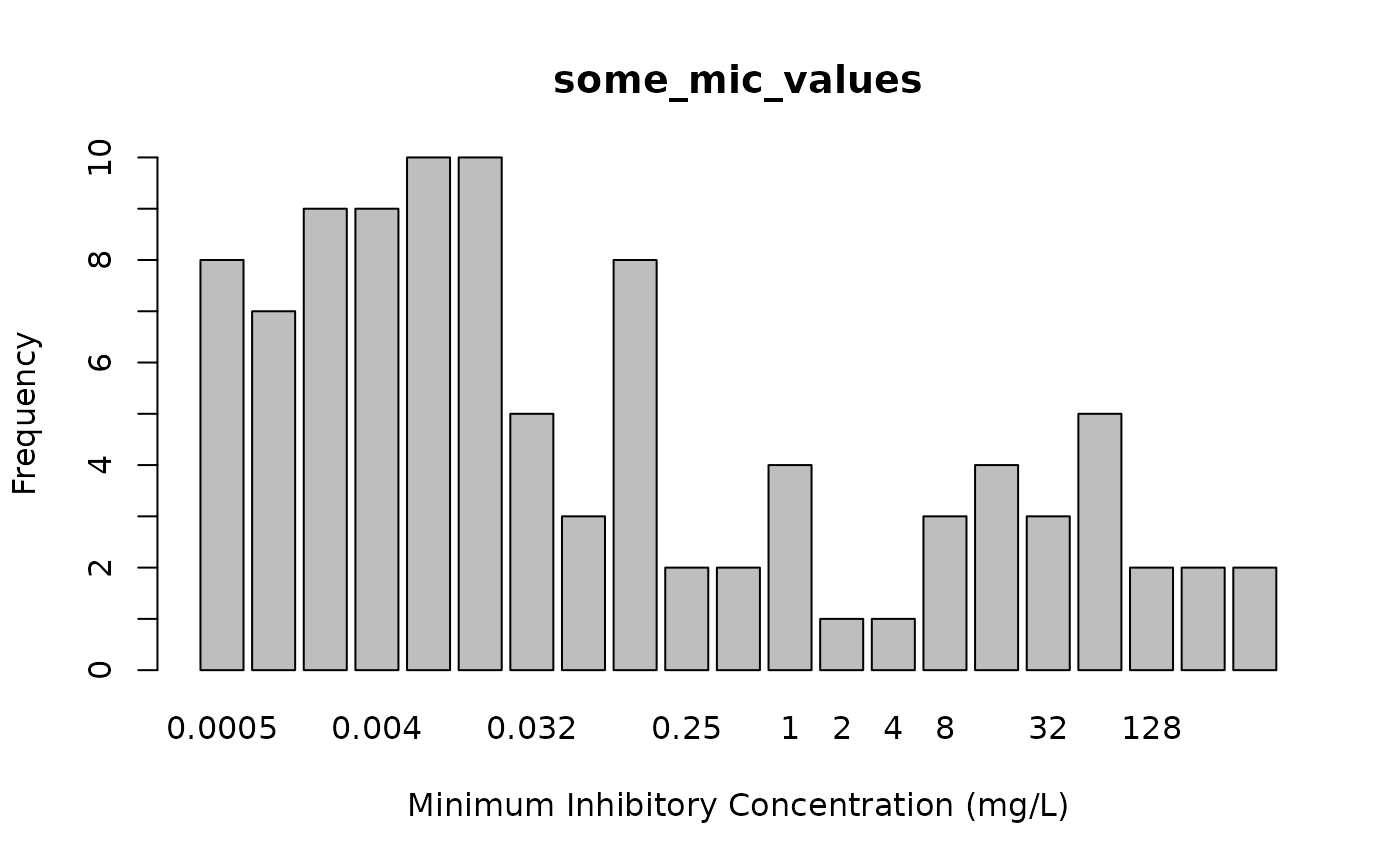mics = as.mic(c(0.25, "<=4", 4, 8, 32, ">=32")),