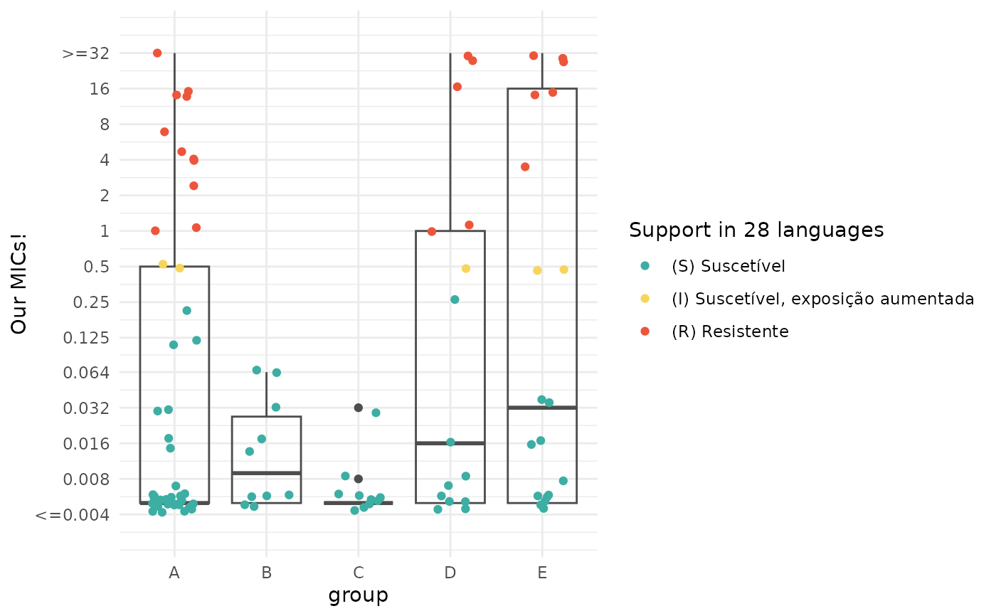 Especially the scale_*_mic() functions are relevant wrappers to plot MIC values for ggplot2. They allows custom MIC ranges and to plot intermediate log2 levels for missing MIC values.