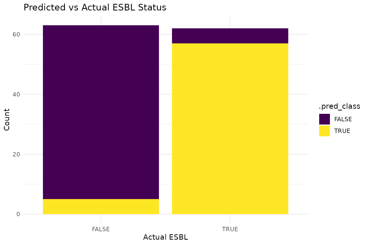 initial_split(): Splits data into training and testing sets.fit(): Trains the workflow.predict(): Generates resistance predictions.metrics(): Evaluates model performance.